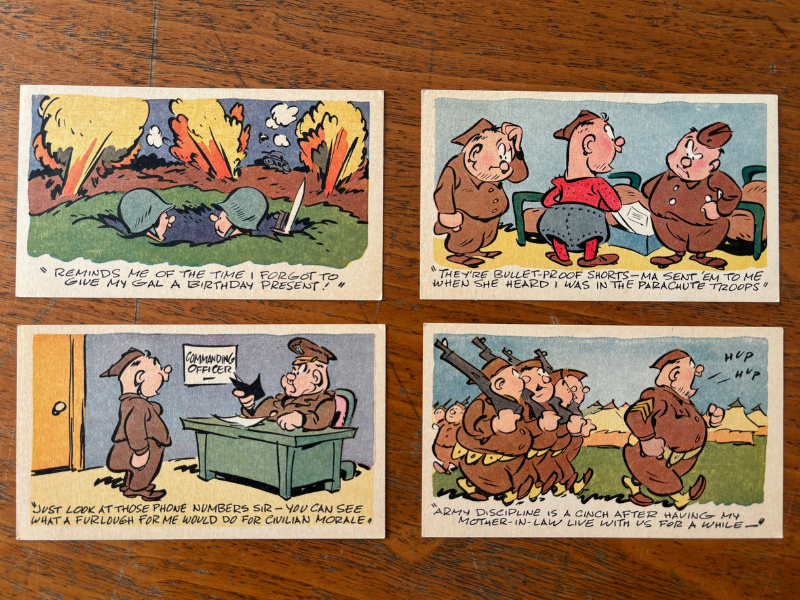 Next was the Servicemen’s Kard Kit from 1943-1945 featuring comical postcards that servicemen could easily mail to their loved ones. The kit in our collection has only unused postcards, but I imagine the person who owned it sent a few home before the war’s end on September 2, 1945.