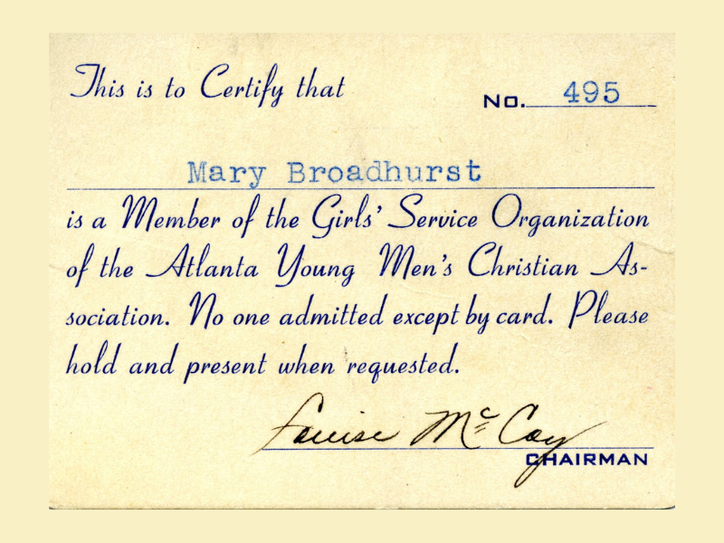 Children from these two families – Emma Mary Phillips and William Gibson Broadhurst, Jr. – were married. Emma was a student of the Leffingwell Violin School and a member of the Atlanta Ladies’ Concert Orchestra. She was a socialite who also served in the Girls’ Service Organization, which was part of the Atlanta YMCA. She even procured an invitation to see the White House in 1935. There are several scrapbooks, compiled by Emma, that are part of the collection, as well as family photos, letters, and journals.